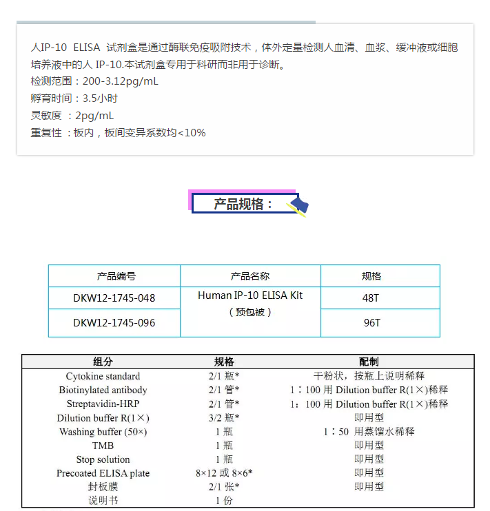 達優?Human?IP-10 ELISA?kit(預包被)上市了