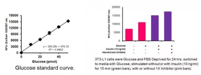 BioVision EZCellTM Glucose Uptake Assay kit 是一種簡單而超級靈敏、易用的葡萄糖攝取檢測試劑盒。試劑盒利用一種特殊的己糖激酶抑制劑抑制己糖激酶,己糖激酶是糖代謝過程中涉及到的第一個酶,在葡萄糖被細胞攝取后,可捕獲葡萄糖。 葡萄糖攝取是利用一系列酶反應檢測的,被氧化的葡萄糖產生的中間產物可以與OxiRed?探針反應而發出熒光信號(Ex/Em=535/587 nm) 。熒光信號量直接反應細胞所攝取和積累的葡萄糖。不像其他試劑盒是直接檢測葡萄糖衍生物,BioVision 提供了一種直接而強大的葡萄糖研究工具,可用于篩選和表征葡萄糖攝取相關疾病的藥物。