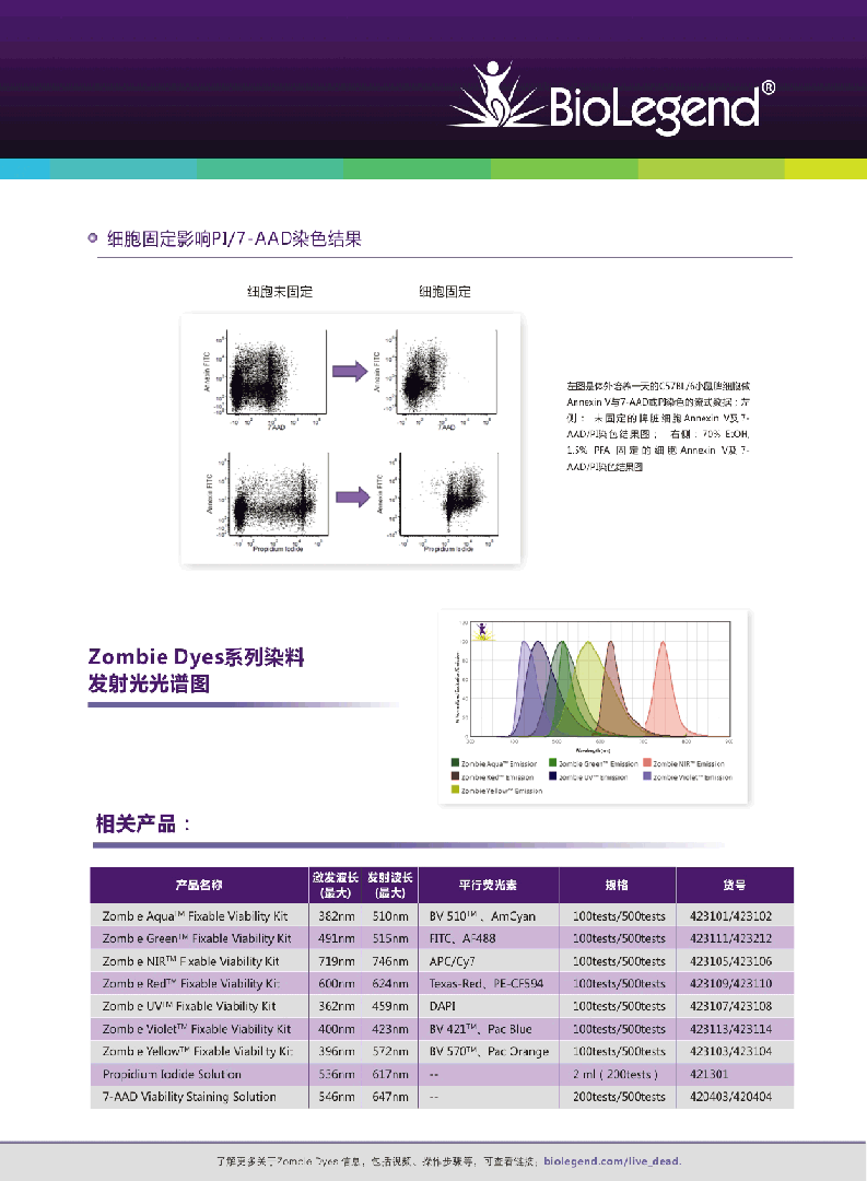 新型死/活細胞染料——Zombie 系列染料